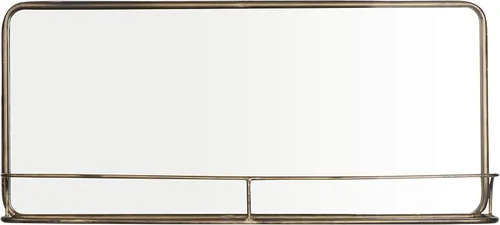Mejora el espacio con este moderno espejo de pared con marco de metal con estante. Este espejo cuenta con un elegante marco de metal y un estante elegante y funcional en un acabado de latón que añade un toque de elegancia y comodidad a la decoración. El espejo está hecho de metal y vidrio para un aspecto duradero y sofisticado. El espejo tiene mecanismos de suspensión para una fácil instalación y se puede colgar solo horizontalmente. El estante es perfecto para almacenar elementos esenciales o mostrar accesorios. Este espejo es ideal para añadir un toque de elegancia y comodidad al baño, dormitorio o entrada. Mide 36 pulgadas de ancho por 16 pulgadas de alto, por lo que es un tamaño perfecto para cualquier espacio. Este espejo es una pieza impresionante que añadirá un toque de sofisticación a cualquier hogar.