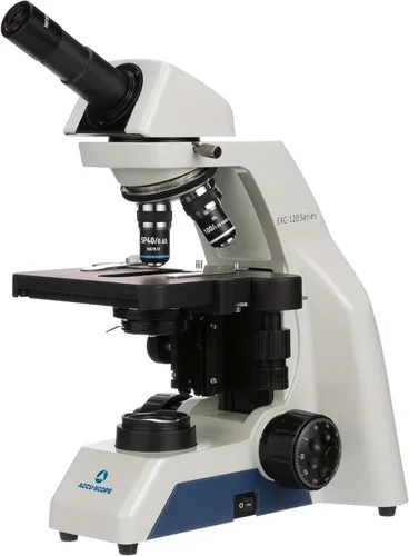 Ergonómico || Cuenta con un mecanismo de enfoque coaxial de baja posición para una comodidad ergonómica completa para los usuarios durante períodos de visualización prolongados EXCELENCIA ÓPTICA || Óptica acromática DIN de alta calidad en objetivos de aceite 4x, 10x, semi-plano 40xR* y 100xR* (cargado por resorte) que proporcionan un aumento superior de 40X-1000X. Control LED variable con condensador Abbe y diafragma de iris que ofrece una iluminación brillante y uniforme para un excelente contraste de imagen MICROSCOPIA AVANZADA || El microscopio ACCU-SCOPE EXC-121 es ideal para observación de campo brillante, contraste de fase y microscopía de polarización simple Construcción duradera: el robusto marco de aluminio fundido a presión con todos los engranajes de latón está diseñado para años de uso intensivo. Ofrece un valor y un rendimiento excepcionales para aplicaciones avanzadas Portátil: con dos asas de transporte integradas y envoltura de cable, este microscopio es altamente portátil, lo que te permite llevarlo donde necesites