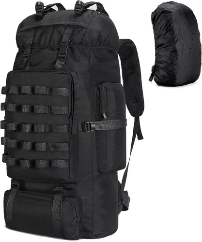 Mochila de senderismo para acampar de 70 litros con cubierta de lluvia, mochila Molle impermeable para hombres, mochila para trekking, escalada al