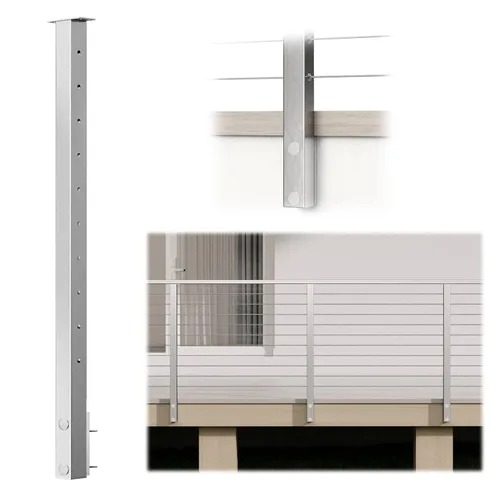 Instalación de montaje lateral: Este poste cuadrado de 36" (acabado cepillado) está diseñado para instalarse contra el costado del rellano. Está preperforado con 10 pares de agujeros nivelados para trabajar en secciones horizontales y ahorrar trabajo. Puede actuar como poste final estructural y poste medio en secciones niveladas. Este poste de barandilla de cable viene con un soporte plano para adaptarse a pasamanos planos Resistente a la intemperie Característica: Este poste de barandilla de cable está hecho de acero inoxidable T304 de alta calidad. Tiene una excelente resistencia a la corrosión y puede servir durante mucho tiempo. Es adecuado tanto para aplicaciones en interiores como exteriores, como terrazas, escaleras, porches, balcones y vallas. Sin embargo, tenga en cuenta que esta publicación PF02 no es adecuada para proyectos dentro de 10 millas del mar o áreas de agua salada Cumplimiento del código: Este poste cuadrado estructural está diseñado con un espacio de cable de 3 ". Generalmente, el tramo entre dos postes estructurales no debe exceder los 4 pies para pasar la prueba de esfera de 4". Es importante consultar a las oficinas de construcción locales sobre las reglas, ya que puede haber diferentes requisitos en algunos estados Consejos para la construcción de un sistema: recomendamos las siguientes combinaciones de productos de Muzata: kit de barandilla de cable CR23, cable WR02, funda protectora CR72 CR79 CR91, arandela en ángulo CR25, cortador de cable y crimpadora hidráulica CK12, poste de escalera PF01 LB4S, poste de nivel PF02 LH4S, pasamanos HT100 SL4, mano conectores de riel HA01 HA02 HA23. ¿Busca más diseños o tipos de sistema? Haz clic en "Visit the Muzata Store" debajo del título ¿Por qué elegirnos? Muzata ha estado trabajando con todos los esfuerzos para proporcionar productos de calidad y servicio profesional, haciendo que la renovación del hogar sea fácil y asequible. Necesita soluciones completas de personalidad, por favor comuníquese con nosotros para obtener un diseño gratuito o servicio postventa