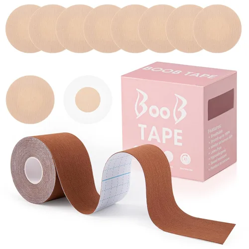 Marrón con 10 cubiertas tejidas para pezones.
