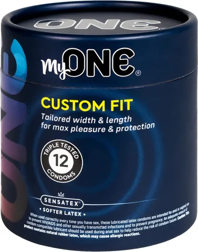 ¡Deja de usar condones mal ajustados! Los condones MyOne Custom Fit cuentan con una variedad de tamaños, desde cómodos hasta extra grandes. MyOne te permite personalizar tu longitud y ancho para un ajuste perfecto. Ofrecemos 10 códigos de ancho. Cada ancho tiene 3 opciones de longitud. Di adiós a las molestias, deslizamientos y apretones. Sigue las instrucciones en las imágenes o viñetas para encontrar tu ajuste perfecto.