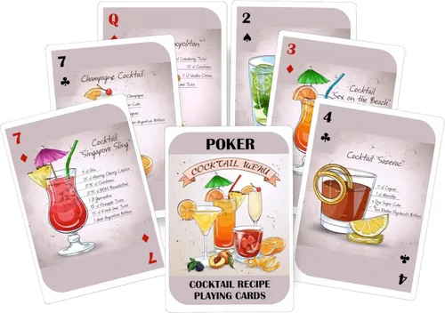 Drinkin Jugando a las cartas con recetas de cócteles de alcojol. Juego de fiesta. Baraja de cartas Starndard