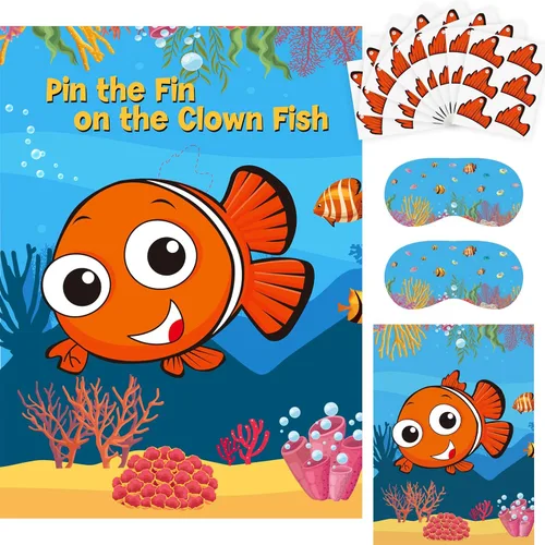 Grandes suministros para fiestas: a diferencia de otros productos en el mercado que solo tienen un póster y algunas calcomanías, nuestro juego pin the fin incluye 2 juegos de carteles y calcomanías. Esto permite que los niños jueguen sin tener que hacer cola durante demasiado tiempo. Este juego fácil y divertido traerá risas en una fiesta de cumpleaños con temática oceánica Cómo jugar: utiliza las calcomanías de puntos para pegar el póster en la pared, luego póngalo en la venda de los ojos, toma la calcomanía de la aleta y fíjala al pez payaso, quien se acerque al área objetivo gana. Elección ideal para niños niños animales del océano fiesta de cumpleaños de pez payaso. Lo que obtendrás: este gran paquete de regalo contiene 2 carteles de pez payaso (28 x 21 pulgadas), 48 calcomanías y 2 vendas para los ojos, 24 calcomanías de puntos. Recuerdos de fiesta con temática oceánica: exclusivamente para fanáticos de animales del océano/pez payaso. Hemos preparado cuidadosamente carteles y calcomanías dobles, ¡deja que los niños comiencen su propia fiesta! Multiusos: este juego de fiesta de pez payaso es una gran opción para fiestas temáticas de mar oceánico, juegos de fiesta escolar, fiestas de cumpleaños de niños y cualquier otro evento. Al mismo tiempo, también puede decorar la habitación de los niños/niños.