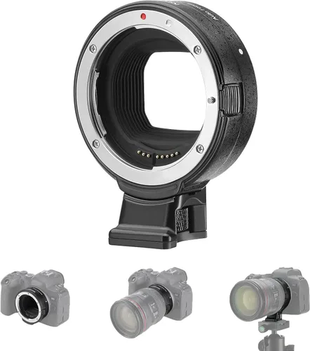 Lente EF para cámara de montaje RF: este adaptador de lente es compatible con lentes Canon EF/EF-S a una cámara de montaje RF, compatible con Canon EOS R Ra RP R3 R5 R5C R6 R6 Mark II R7 R8 R10 y R50 Funciones completas retenidas: los contactos eléctricos mantienen el enfoque automático de velocidad rápida, control de apertura automático, estabilización de imagen y otras funciones en tu lente mientras transfieres datos EXIF a tu cámara Construcción de metal duradera: los soportes de metal en la parte delantera y trasera son duraderos y no se rompen, asegurando una excelente capacidad de peso: 4.4 libras. Los hilos suaves aseguran la lente y el cuerpo de la cámara perfectamente como si fuera un ajuste natural Estructura resistente a la intemperie: fabricado con el mismo estándar riguroso que tu cámara, este adaptador puede soportar la lluvia, el polvo y otras condiciones climáticas adversas Contenido del paquete: 1 adaptador de montaje de lente EF-EOS R, 1 tapa delantera, 1 tapa trasera, 1 manual de usuario (idioma español no garantizado). Nota: 1) El adaptador no es compatible con AF-C en modo de vídeo. 2) Un soporte de lente es necesario si se utiliza una lente de más de 4.4lb/2kg