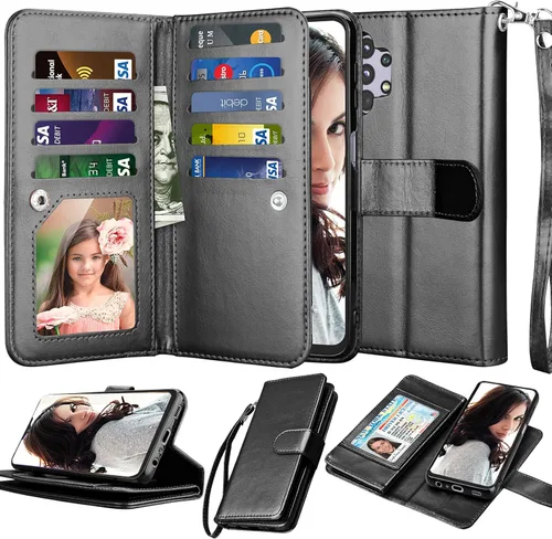Características: - Cuero sintético de alta calidad, presenta buen aspecto y durabilidad. -La funda delgada desmontable se puede demandar por separado, en caso de que quieras un estuche simple a veces -9 ranuras para tarjetas para colocar múltiples tarjetas de crédito, dinero en efectivo, identificación, amantes o fotos de niños -Soporte incorporado para visualización horizontal de medios y manos libres - Recortes precisos, correa magnética fácil de cerrar, nunca se desgasta. - Piel sintética de alta calidad y correa de muñeca desmontable para un fácil transporte. -Imanes con fuerte absorción pero bastante fácil de desmontar, garantiza seguridad y conveniencia Compatible con: Samsung Galaxy A32 5G lanzado en 2021 El paquete incluye: -1 x Njjex 9 ranuras para tarjetas Funda de cuero tipo cartera para Samsung Galaxy A32 - 1 correa de mano.