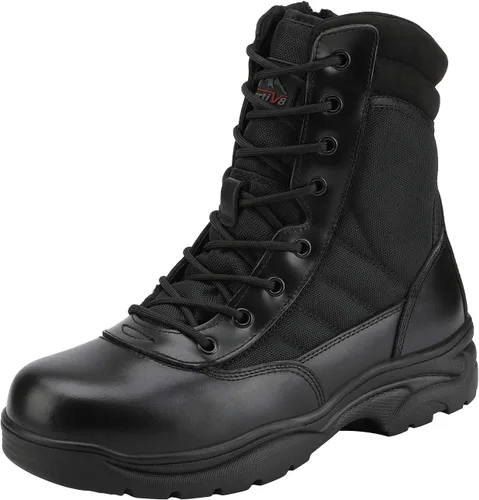 NORTIV 8 - Botas de trabajotácticasmilitares para hombre, botas de cuero con cremallera lateral para combate o motocicleta (6-8pulgadas)