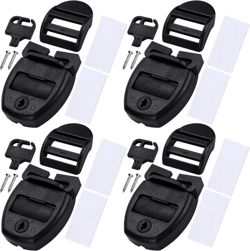 Útiles y prácticos - Estos clips para cubierta de tina de hidromasaje proporcionan protección contra posibles daños por viento, y son reemplazos perfectos para tus pestillos de cubierta perdidos, rotos o viejos. Amplias aplicaciones: adecuado para correas de cubierta de bañeras de hidromasaje y otras, que es adecuado para correas de cubierta de spa de 1 a 1.3 pulgadas de ancho. Ampliamente utilizado en spas, aguas termales, bañeras de hidromasaje, Sunstar, cubiertas para spa y más. El kit de reparación incluye: 4 pestillos de spa (lado macho con cerradura y lado hembra con hebilla de liberación central), 4 deslizadores, 4 llaves y 8 piezas de tornillos autorroscantes de acero inoxidable. Fácil de instalar, el clip macho tiene una ranura, no es necesario cortar y se puede instalar la correa directamente, y los tornillos se utilizan para fijar el clip hembra. Hay 8 calcomanías para fijar los botones, lo cual es fácil de operar sin otras herramientas. Diseño seguro: viene con llaves para bloquear los clips, es seguro para ti si no puedes abrir el pestillo, lo que también podría evitar que otras personas o niños pequeños abran los pestillos Material de alta calidad: el kit de bloqueo de clip para cubierta de bañera de hidromasaje está hecho de plástico de alta calidad, es resistente, resistente al desgaste, fuerte y resistente a la corrosión. Alta calidad y se puede reciclar sin preocuparse por la rotura del pestillo.