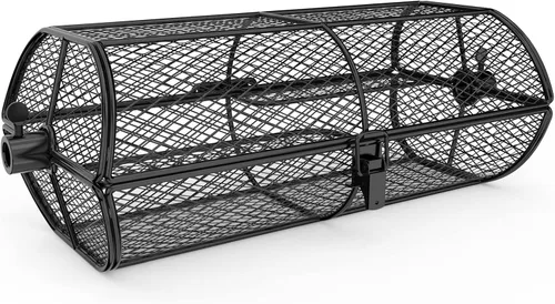 Construcción: teflón de grado alimenticio (Nota: solicitud de patente. Contra cualquier plagio) Se adapta a parrilla de asador con varilla de asador hexagonal de 1/2" o 3/8", varillas de asador cuadradas de 3/8" o 5/16" Perfecto para la preparación de alimentos pequeños y finamente picados como papas fritas, mariscos, alitas de pollo y verduras, etc. La acción giratoria asegurará que los alimentos y verduras estén completamente cocidos La naturaleza de auto-hilvanado de un asador, tu comida permanecerá maravillosamente húmeda y tierna
