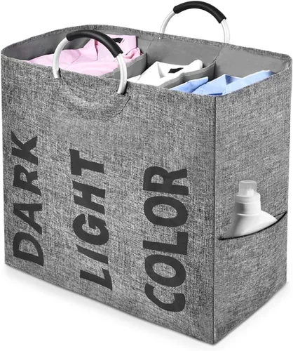 OTraki Cesta de lavandería de 3 secciones con asa, 106 litros, 3 compartimentos, cesta dividida para lavandería, plegable, ropa sucia, bolsa
