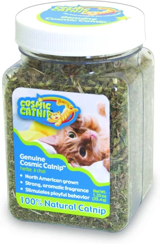HIERBA GATERA PREMIUM: ¡100% Hierba Gatera Premium Natural Cultivada en Norteamérica que tus amigos felinos seguramente disfrutarán! HISTORIA DE EXCELENCIA: Cosmic Catnip se ha fabricado durante más de 30 años y se envasa aquí en Ohio. Es una gran alternativa a los aerosoles de hierba gatera y es segura para gatos de todas las edades. ALTA POTENCIA: Nuestra fragante hierba gatera tiene un aroma tentador y atractivo para atraer a tu gato al tiempo de juego Cosmic Catnip fomentará el comportamiento juguetón, obsérvalos ronronear, rascar y maullar durante horas de diversión. DETENER EL COMPORTAMIENTO DESTRUCTIVO: Usa nuestro catnip premium con otros juguetes para gatos, su poste de rascar favorito y rascador para gatos para detener el comportamiento destructivo. USO SUGERIDO: La hierba gatera se puede administrar de forma segura cada dos días, sin embargo, la efectividad desaparece con la exposición constante. ¡Darle a tu gato un descanso entre exposiciones garantiza el disfrute cada vez!