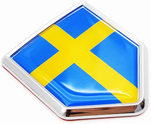 Overdecor Calcomanías de bandera de Suecia, emblema de automóvil, accesorios de automóvil suecos, decoraciones de bandera de escudo cromado,