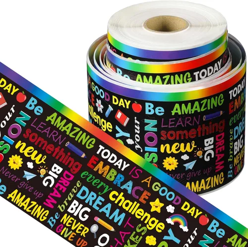Lo que obtienes: recibirás un rollo de borde de anuncios inspirador, que es de 98.4 pies de largo y 3 pulgadas de ancho, la longitud suficiente puede decorar múltiples tableros de anuncios, impresos con docenas de citas inspiradoras, lo que estimulará la pasión de tu estudiante por el estudio y la vida Diseño motivacional: el borde motivacional para el aula está impreso con citas inspiradoras, que pueden añadir elementos encantadores y fantásticos a tus tableros de anuncios, pizarras, pizarras blancas y paredes para atraer la atención de los estudiantes, animarlos y recordarles que se mantengan activos en la vida Longitud continua: la calcomanía inspiradora para borde de anuncios de cuotas cuenta con un diseño enrollado, y la longitud continua puede alcanzar los 98.4 pies para satisfacer tu uso diario en el aula, el tamaño es para que lo cortes, por lo que no hay necesidad de preocuparte de que la longitud no sea adecuada, y puedes mostrar tu talento creativo y artístico y poder organizarlos como desees Borde autoadhesivo: nuestra decoración de tablón de anuncios de mentalidad de crecimiento está hecha de papel de calidad y pegamento autoadhesivo, se puede pegar directamente sin preparar pegamento, confiable e impermeable, no se decolora ni rompe fácilmente, sin residuos pegajosos, ligero y reutilizable, se puede aplicar durante mucho tiempo. Utilizarlo para decorar el aula puede hacer que el ambiente de aprendizaje en el aula sea más animado e interesante Amplias aplicaciones: el adorno de pared inspirador escolar tiene colores brillantes de dibujos animados y hermosas formas, se puede pegar en pizarra y pizarra blanca, y otras superficies lisas y limpias como paredes, puertas, ventanas. Adecuado para el hogar, escuela, fiesta de regreso a la escuela, exhibición motivacional en el aula, que es adecuada para que los profesores animen a los estudiantes y proporcionen motivación para su estudio