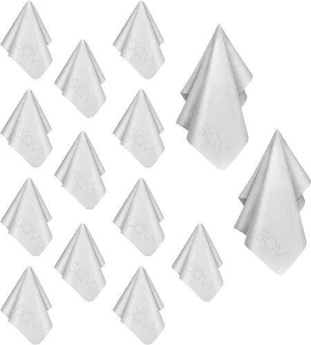 ★ Extra grueso con tacto suave como el ante – Los paños de microfibra de limpieza SQV están hechos de tela de alta calidad sin pelusas. Hecho grueso, este limpiador similar a la gamuza absorbe la humedad, pule y elimina 4 veces más polvo, manchas de aceite, huellas dactilares y suciedad que los competidores inferiores. Prueba este paño ultra fino y extremadamente suave tú mismo y siente la diferencia. ¡Nunca comprarás otra marca! ★ 12 paños pequeños y 2 grandes – empaquetados individualmente: actualmente estás mirando el paquete, que incluye 12 paños pequeños de 6 x 6 pulgadas (5.9 x 5.9 in) y 2 paños grandes de 12 x 12 pulgadas (11.8 x 11.8 in). Cada paño de microfibra está envuelto en una bolsa de celofán separada. Los paños de limpieza de microfibra vienen en 3 hermosos colores: negro, gris y rosa. Elija el paquete y el color que le guste utilizando el selector de productos debajo del indicador de precio. ★ Paquete de 2 tamaños perfectos: olvídate de pequeñas piezas baratas de tela que se deslizan a través de tus dedos. Tanto los paños de pulido SQV pequeños como grandes están diseñados lo suficientemente grandes para un uso cómodo y sin preocupaciones. Utiliza el paño de microfibra de tamaño pequeño de 6 x 6 pulgadas para limpiar anteojos, lentes de sol, lentes, ópticas, teléfonos, tabletas y pantallas pequeñas. Utiliza una prenda de tamaño más grande de 12 x 12 pulgadas para limpiar pantallas de computadora grandes, TV, LCD, HD y grandes superficies de vidrio. ★ Lavable a máquina y sin pelusas: 100% seguro de usar para anteojos, lentes de sol, TV, LCD, pantalla HD, computadora, laptop, tableta, teléfono celular, electrónica fina, espejo, cámara fotográfica, lentes, reloj, joyas, oro y otras superficies delicadas. Compatible con iPhone, iPad, MacBook. El mejor paño de microfibra para eliminar el aceite, las huellas dactilares y la suciedad con solo deslizar y sin toallitas químicas o limpiadores. Simplemente lava el paño en agua tibia cuando se ensucie y quedará como nuevo. ★ Diseñado por el fabricante de ópticas: SQV es un fabricante profesional de lentes y lentes con más de 20 años de experiencia en el campo. Todos nuestros productos están diseñados en los Estados Unidos con el más alto estándar de calidad, fabricados con materiales de primera calidad, probados por profesionales de la industria, y están garantizados para durar más que a nuestros competidores. Estamos seguros de que te encantará este paño de microfibra y nunca limpiarás tus gafas, lentes o pantallas con nada más. Para disfrutarlo, presiona "Añadir al carrito" ahora