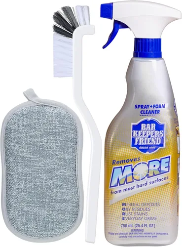 Pantry Delight Barr Keepers Friend - Limpiador de espuma en aerosol multiusos de 25 onzas, paquete con cepillo de limpieza para lechada y esponja