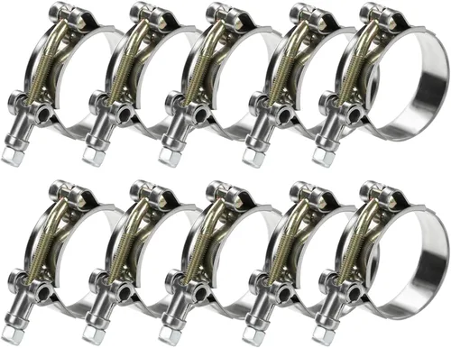 Rango de trabajo de la abrazadera de perno en T: diámetro exterior de la manguera de 34-40 mm, apto para un diámetro interior de manguera de 1-3/16 pulgadas, por favor, comprueba el diámetro exterior de tu manguera para que se ajuste al rango de trabajo antes de comprar. [Calidad Premium] Las abrazaderas de manguera de perno en T están hechas de acero inoxidable y tuercas recubiertas de zinc, y el material es de resorte de zinc chapado en color, suave, sin rebabas y duradero. Diseño de bridas: Las abrazaderas para mangueras de radiador están diseñadas para proporcionar una conexión sin fugas, el proceso de brida de arco redondo del borde de la banda de acero puede evitar que los bordes afilados corten la tubería. [Amplia aplicación] Las abrazaderas de manguera de servicio pesado generalmente se instalan en mangueras de escape de camiones o de entrada de aire y agua, sistemas de escape de motocicleta, aplicaciones marinas, mangueras de sistema de riego, mangueras de bomba de agua y bolsas de filtro. [Nuestro servicio] Si tienes alguna pregunta sobre la abrazadera T, ponte en contacto con nosotros a tiempo, te daremos una respuesta satisfactoria en 24 horas.