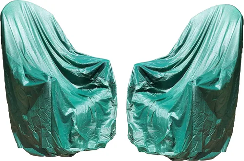 Cada una de las dos cubiertas está fabricada con vinilo en relieve Diseñado para adaptarse a una variedad de sillas Adirondack. Vea las dimensiones a continuación. Parte inferior elástica para un ajuste seguro. Protege tus muebles de arañazos, suciedad, residuos y los elementos. Cada funda cubrirá varias sillas apilables. Dimensiones cada uno: 34" de profundidad, 37" de alto, 31" de ancho