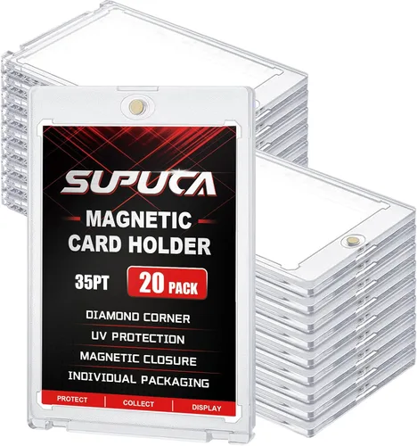 El paquete incluye: 20 paquetes de 35 portatarjetas magnéticas, miden 4.33 pulgadas de largo x 2.87 pulgadas de ancho exterior y 3.52 pulgadas de largo x 2.52 pulgadas de ancho en el interior, tamaño para adaptarse a tarjetas comerciales de tamaño estándar (2.5 x 3.5 pulgadas). Mantenga las tarjetas en buen estado: el tarjetero con un toque está hecho de material acrílico de alta calidad, bien hecho y duradero. Cada tarjetero está empaquetado individualmente, sin miedo a golpes y arañazos Resistente a los rayos UV: nuestros protectores de tarjetas utilizan aditivos de bloqueo UV para proteger tus preciosas tarjetas de los rayos UV, no te preocupes por que tus valiosas tarjetas se desvanezcan Diseño de esquina de diamante: las esquinas de diamante están diseñadas para proteger tus tarjetas favoritas de cualquier daño. Tus tarjetas nunca se doblarán, rayarán o arrugarán de nuevo Amplia aplicación: soporte magnético para tarjetas intercambiables para coleccionar, almacenar o mostrar tus tarjetas favoritas de todo tipo, compatible con coleccionar tarjetas intercambiables, tarjetas de béisbol, tarjetas deportivas, tarjetas de juego y más