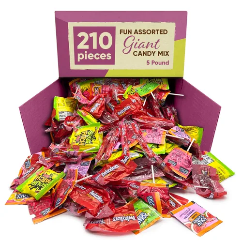 Paquete variado de dulces Caramelos a granel envueltos individualmente, 210 unidades 5 libras a granel Jolly RancherTwizzlers Strawberry, Sour