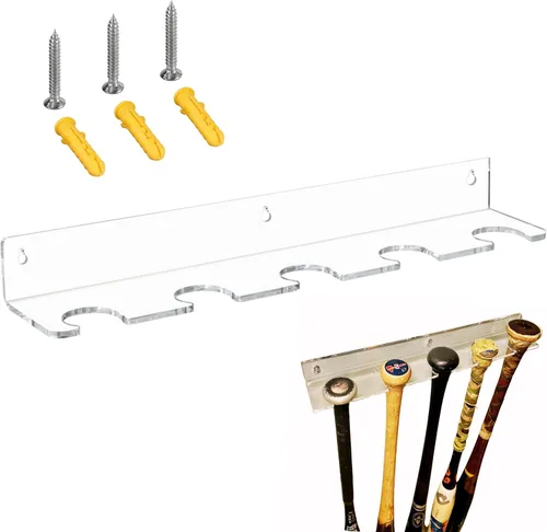Muestra con orgullo tu colección: muestra tus murciélagos coleccionables y deja que tus invitados vean tu equipo autografiado. Nuestro soporte para bates de béisbol te permite colgar 5 bates para que todo el mundo los vea. Instalación sin esfuerzo: se incluyen herramientas e instrucciones para hacer que la configuración de estos soportes de béisbol de aspecto elegante sea lo más simple posible. En menos de 5 minutos, tienes un soporte de pared instantáneo para murciélagos Para uso de por vida: cada colgador de exhibición de murciélagos está hecho de acrílico resistente cortado con láser. Los estantes de soporte tienen una sensación satisfactoria y una textura sólida, asegurando su fiabilidad mientras llevas tu bate. Sostiene béisbol sóftbol y mini bates. Colgado firme y sin burbujas: estos estantes de béisbol se cuelgan con 3 tornillos y anclajes. Esto proporcionará almacenamiento colgante que ahorra espacio en las paredes de tu hogar. El soporte sostiene 5 murciélagos verticalmente y evitará que se caigan. 16.9 in Largo Regalo perfecto para los fanáticos del béisbol: sorprende a tu toletero favorito con un soporte para bates que pueden utilizar para cuidar su colección de bates de béisbol. Muestra tu juego usado o bate de coleccionista.