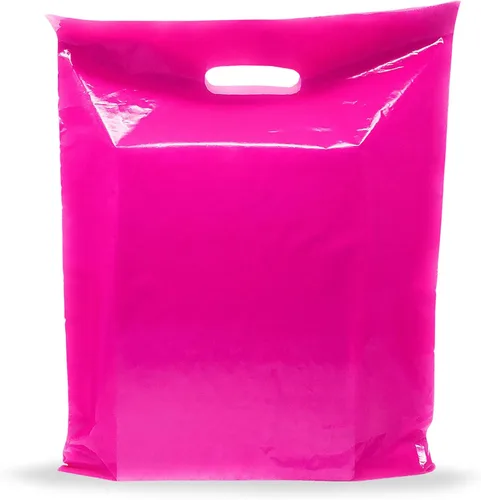 Paquete de 200 bolsas rosadas brillantes con asas troqueladas, medidas: 12.0 in x 15.0 in x 15.0 in de grosor Colorido, muy fuerte, reutilizable, duradero y cómodo. Hermosos colores, multiusos, fácil de usar, ideal para compras, venta al por menor, fiesta, suministros de eventos de proveedores. Bueno para negocios, tiendas de ropa, regalos, regalos de agradecimiento, envíos, joyas, comestibles, boutiques y múltiples ocasiones. Hecho a granel con material plástico de LDPE resistente (polietileno de baja densidad). Reciclable. Excelentes bolsas de compras, bolsas de regalo, bolsas de camisa bolsas de pequeñas empresas. Materiales de primera calidad para grandes y pequeñas empresas