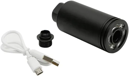 El nuevo rastreador simulado Spitfire tiene 2 luces LED de alta potencia (5W) importadas. Simula el efecto del fuego. Puede saturar aligerar la bomba fluorescente inmediatamente y garantizar el brillo máximo. Los usuarios no tienen que irradiar las bombas fluorescentes por adelantado. Las siguientes situaciones indican que la batería está agotada y necesita cargar: R.No puedes encender el encendedor S. Cuando la energía de la batería es baja, después de que el indicador de encendido parpadee en color rojo durante 3 segundos. B. Puedes encender el encendedor S, pero el indicador de encendido está en luz roja, pestañas rápidamente varias veces y luego se apaga. Característica: Carga USB hasta 4 horas de uso Batería de litio integrada. Tecnología UV LED de alta potencia Sensor de movimiento integrado en el interior La batería dura hasta 20000 BBS 2 fuentes de luz laterales para una iluminación óptima. Control automático de encendido/apagado por sensor de movimiento. Puede mantener la función de rastreo de hasta 35 rps(2100 rpm) Material: aleación de aluminio Rosca: 0.394 in CW / 0.551 in CCW Peso: 2.54 oz. Tamaño: 1.378 in x 3.150 in. El paquete incluye: 1 x encendedor S 1 convertidor CW de 0.394 in. 1 cable de carga USB.