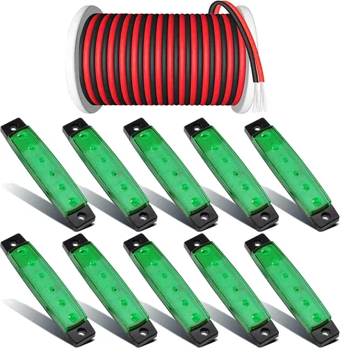 Tira de luces LED verde: apto para luces subterráneas UTV, luces de pozo de rueda, luces de charco, luces decorativas. Ampliamente utilizado en remolques, camiones, todoterreno, carrito de golf, Wrangler, RZR, RV, UTV, ATV. Hecho de 6 LED SMD, lente de PC y carcasa ABS. 12 V CC, IP67 impermeable, tamaño de 3.9 pulgadas. Montaje en superficie, fácil de instalar Cables de extensión: Conductor: Cobre estañado libre de oxígeno de alta pureza, 22awg; Tamaño: 100FT/98.4 ft; Núcleo interno: 60 acciones; Voltaje máximo: 300V. Los cables de extensión se pueden conectar a diferentes luces de coche con una fuerte capacidad de carga