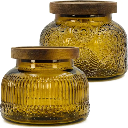 Vidrio premium con tapa hermética: hecho de vidrio grueso y duradero de alta calidad que es libre de plomo y sin BPA, seguro para el uso diario en cualquier hogar. La tapa de madera natural incluye un anillo de sellado de silicona, creando una barrera hermética y a prueba de humedad para mantener los alimentos frescos y secos durante más tiempo Apariencia vintage, decoración elegante del espacio: Este frasco de vidrio recubierto de color con textura única en relieve añade sofisticación a cualquier entorno, es un frasco de cocina perfecto, organizador de baño, almacenamiento para tocador o accesorio para barra de café - una adición versátil y elegante para tu hogar, o un elegante centro de mesa o portavelas para encimeras, estanterías o mesas auxiliares Tamaño adecuado para un almacenamiento versátil: con una capacidad neta de 23.7 fl. onzas, este contenedor es ideal para galletas, café, azúcar, harina, té, pasta, nueces, frutas secas, dulces, sales de baño, hisopos de algodón, golosinas para mascotas y más. No solo es fácil de manejar, sino que también puede ser una solución de almacenamiento y decoración elegante y funcional para cocinas, baños, salas de estar o tocadores Boca ancha y interior liso: La abertura amplia permite un llenado, una extracción y una limpieza sin esfuerzo, facilitando el acceso y siendo conveniente para su uso tanto en almacenamiento como con fines decorativos Versatil para almacenamiento y regalo: Perfecto para organizar productos básicos de la despensa (granos de café, azúcar, pasta, aperitivos) o para servir golosinas. Con su combinación de belleza y funcionalidad, también es un maravilloso regalo de inauguración de casa o de boda