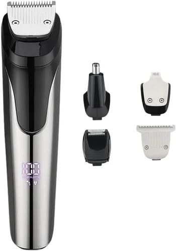 Descripción: Color: Negro plomizo Material: acero inoxidable Fuente de alimentación: USB recargable Método de limpieza: Totalmente lavable Batería incorporada: Sí Duración de la batería: 1-3 horas 1. Juego cinco en uno, multifuncional, lavable. 2. Batería digital más reciente. Batería de liti3. Batería de litio mejorada: carga rápida, larga durabilidad. La carga de 2 horas ofrece más de 120 minutos de uso continuo. 4. La batería digital muestra niveles del 1 al 99 (99 indica carga completa) con alerta de batería baja. 1. El versátil diseño 5 en 1 integra funciones de corte de cabello, corte de patillas, recorte de vello de nariz, cuidado de cejas y funciones de limpieza. Un dispositivo satisface las necesidades de aseo de toda la familia. 2. Equipado con cuchillas de acero inoxidable de alta calidad que son afiladas. El diseño que abraza la piel garantiza un recorte y corte suaves, minimizando los tirones y las molestias. 3. Cuerpo portátil y ligero. Soporta uso húmedo y seco. Cuchillas lavables para una fácil limpieza, ideal para uso doméstico y de viaje. 4. Batería de litio de larga duración con carga rápida que ofrece hasta 90 minutos de uso por carga para un funcionamiento eficiente y sin complicaciones 5. La tecnología de motor silencioso minimiza el ruido durante el uso, junto con peines guía de precisión para cortes de pelo consistentes y uniformes. El paquete incluye: 1 juego de corte de pelo 5 en 1.