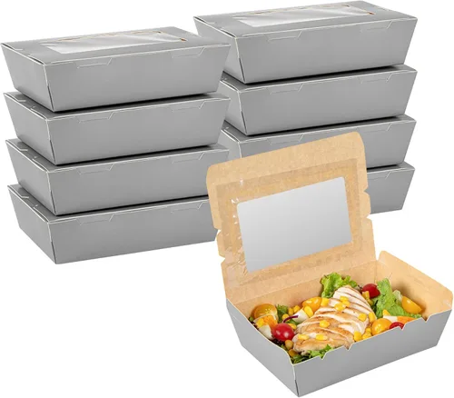 4 cerraduras integradas: equipadas con un total de 4 cierres de pestaña en los lados y en la parte delantera, estos contenedores duraderos proporcionan una forma segura de transportar pequeñas picaduras con facilidad. VENTANA TRANSPARENTE: Con una ventana de plástico transparente, los clientes podrán echar un vistazo a sus sabrosos acompañamientos o deliciosos postres. ESTRUCTURA FUERTE: Con una construcción de papel premium y forro impermeable a la grasa, estas cajas pequeñas para llevar contienen firmemente los ricos sabores de sus platos y los mantienen intactos de manera confiable mientras se transportan. IDEAL PARA CAFÉS, PANADERÍAS, RESTAURANTES Y MÁS: Estos elegantes contenedores grises para llevar son ideales para llevar y servicios de entrega en su bistró, panadería, restaurante y más. 200 CAJAS POR PEDIDO: Con hasta 42 onzas, estos pequeños recipientes para llevar miden 7.9 pulgadas de largo por 5.5 pulgadas de ancho y 2 pulgadas de alto. Recibirás 200 cajas para llevar con cada pedido.