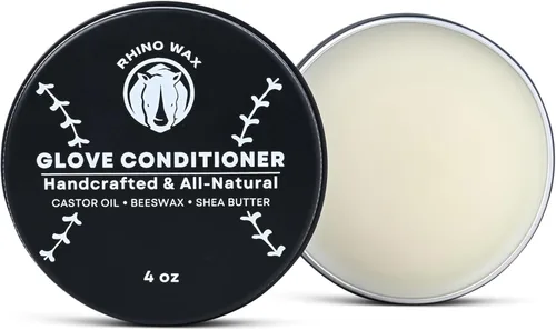 Para uso con guantes de béisbol de cuero o guantes de softbol Hecho en EE. UU. Hidratación efectiva: el acondicionador de guantes de béisbol suaviza e hidrata para romper un nuevo guante, mantener la flexibilidad de tu guante actual o ayudar a restaurar un guante viejo y descuidado Extiende la vida útil de tu guante: el uso regular de nuestro acondicionador de cuero para guantes de béisbol prolonga la vida útil de tu guante. Añádelo a un kit de aceite de guante de béisbol para mantener tu guante en las mejores condiciones Fácil de usar: Aplique acondicionador de aceite para guantes de béisbol y trabaje suavemente en el cuero con un paño o un cepillo suave. Permita que penetren de 12 a 24 horas. Usar después del aceite de guante para romper los guantes Especialmente formulado para guantes de béisbol y softbol: nuestro acondicionador de guantes está diseñado pensando en las necesidades específicas de jugadores adultos y jóvenes, asegurando un rendimiento y protección óptimos Ingredientes naturales: el acondicionador Rhino Wax Glove está fabricado con aceite de ricino prensado en frío de primera calidad, manteca de karité y cera de abejas.