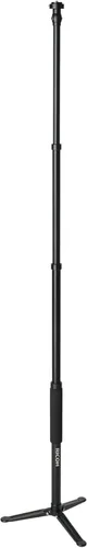 RICOH THETA STAND TD-1: Diseñado especialmente para todas las cámaras THETA serie 360 Características: 1: Diseñado para reducir la aparición de pies monopié en la imagen. Características: 2: La plataforma de la cámara incluye una liberación rápida que proporciona un fácil movimiento dentro y fuera del monopie. Características: 3: El tamaño de almacenamiento compacto es fácil de transportar Modelos compatibles: todos los modelos RICOH THETA. DIMENSIONES: Completamente extendido: 59.8" (152cm) /Collpased 22" (55.8cm)/Peso: 27oz (765g) COLOR: Negro Material: hecho de aluminio ligero y duradero para un fácil transporte y estabilidad. ACCESORIO OPCIONAL: RICOH Stand Weight TT-1 aumenta la estabilidad al proporcionar peso adicional en los pies para garantizar una colocación sólida. Incluye funda de transporte suave con correa