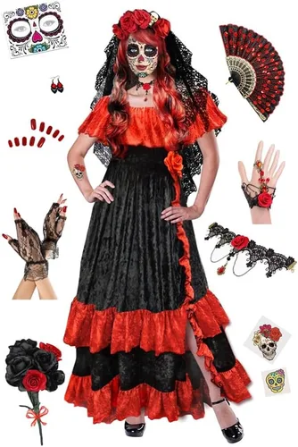 Sanctuarie Designs Disfraz del Día de los Muertos en talla grande para el Día de los Muertos
