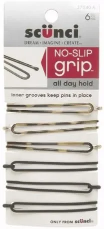 Sujeción segura: los pasadores ovalados de agarre antideslizante Scunci están diseñados con tecnología innovadora para proporcionar un agarre seguro que mantiene los peinados en su lugar todo el día. Diseño versátil: la forma ovalada de estas horquillas permite una mayor flexibilidad y versatilidad en el estilo, creando una variedad de peinados, desde estilos elegantes hasta casuales de media altura. Colores surtidos: Este paquete incluye un surtido de colores, lo que te permite elegir la horquilla perfecta para complementar tu color de cabello o añadir un toque de contraste a tu peinado. Cómodo de llevar: construido con bordes suaves y redondeados y un diseño ligero, estas horquillas son para usar y no se enganchan ni tiran de tu cabello, incluso durante un uso prolongado. Paquete práctico: con seis horquillas incluidas en cada paquete, tendrás muchos pines a mano para peinar tu cabello para looks diarios, ocasiones especiales o retoques sobre la marcha.