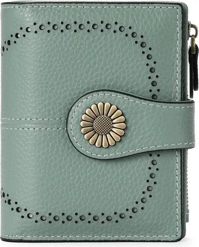 SENDEFN - Billetera pequeña de piel auténtica para mujer, diseño plegable con ventana para tarjeta de identificación