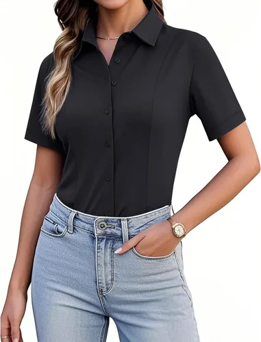 Pregunta sugerida sobre Siliteelon Camisetas de Botón para Mujer, Ajustadas, de Manga Corta, Elásticas, Camisa de Vestir, Sin Arrugas, Sólida, Blusa de Trabajo ¿Este producto sí me sirve para lo que necesito?