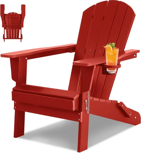 Silla Adirondack plegable de plástico HDPE con soporte para tazas, sillas para hogueras resistentes a la intemperie, sillas Adirondack para patio,