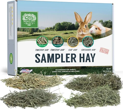 Incluye nuestros 4 henos más vendidos; 2º corte, 3º corte, huerto y avena Gran solución para probar qué heno se adapta mejor a tus gustos de animales pequeños o para añadir variedad a la dieta Por y para los dueños de animales pequeños: nos apasionan nuestras mascotas, por lo que seleccionamos y empaquetamos a mano en pequeños lotes como solo los amantes de las mascotas lo harían Se entrega fresco y mínimamente manejado: directamente a tu puerta en una caja corrugada de alta resistencia que se abre y cierra para un fácil almacenamiento La más alta calidad: heno prémium para conejos, cobayas y chinchillas