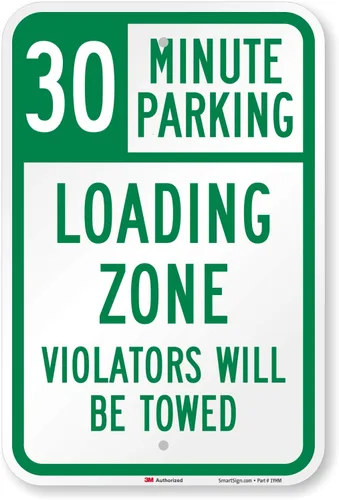 Pregunta sugerida sobre SmartSign Letrero "30 Minute Parking - Loading Zone, Violators Towed" Aluminio reflectante de grado de ingeniero 3M de 12 x 18 pulgadas ¿Este producto sí me sirve para lo que necesito?