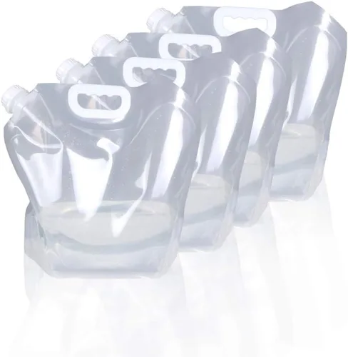 Tamaño de 1.3 galones (5L)/2.6 galones (10 litros). Se pliega o almacena fácilmente en plano, ocupando poco espacio. Guarda varios en tu mochila cuando viajes o al aire libre. Grado alimenticio no tóxico sin BPA, PVC o DEHP. Fabricado con plásticos PET PA PE de alta calidad respetuosos con el medio ambiente. Es transparente, suave, flexible, inodoro, insípido. Más duradero y reutilizable. A prueba de fugas e innovador pico roscado resistente para un sellado hermético y sin goteo. Parte inferior reforzada de postura ancha para que no se vuelque. Gran apertura de 1.61 pulgadas. Mango ergonómico ancho de fácil agarre. Material grueso y fuerte para un uso duradero. Área de etiqueta para marcar el contenido. Nuestro diseño único es diferente a bolsas similares. Utiliza más plástico para una postura más amplia por lo que se mantiene por sí solo, es más estable y duradero. Congelable y multiusos apto para congelador (gran bolsa de hielo). Adecuado tanto para uso en interiores como exteriores. Ideal para camping, senderismo, mochila, pesca, eventos deportivos, fiestas. Ideal para kits de supervivencia y emergencia. Almacene agua, leche, té, jugo, bebidas alcohólicas, etc. También productos secos como frijoles, granos, café.