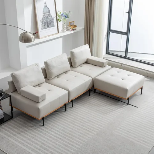 Sofá en forma de L con otomana móvil: diseñado en una forma de L única, este sofá no solo proporciona un amplio espacio para sentarse, sino que también añade un toque moderno y elegante a tu sala de estar, creando un ambiente acogedor y acogedor. Y la otomana está diseñada de forma independiente, puedes cambiar su posición y función para adaptarse a tu espacio y necesidades. Cojín de respaldo con funda extraíble: los cojines de respaldo incluyen espuma de alta densidad que extiende la comodidad. Y los cojines de respaldo están diseñados con funda con cremallera, extraíble y se limpia fácilmente. Polvo regularmente. Limpiar suavemente con un paño limpio y ligeramente húmedo. Se recomienda una limpieza profesional. Evite la luz solar directa. Nunca aplique ni limpie con productos químicos agresivos. 【Últimamente cómodo】La tela palomino de alta calidad te proporciona una mejor experiencia de asiento. Se añade esponja de alta densidad dentro del cojín del sofá, para que puedas disfrutar de la comodidad extrema, y con dos cómodos reposabrazos, puedes reclinarte sobre ellos para relajarte, es la mejor opción para tomar una siesta en esta safa. Duradero y resistente: el marco de madera contrachapada sólida y las patas de metal hacen que este sofá en forma de L sea lo suficientemente fuerte como para ser utilizado durante muchos años sin hundirse ni tambalearse, con la capacidad de peso por asiento de hasta 264 libras. Este sofá de 3 plazas es adecuado para el espacio pequeño, como tu sala de estar, apartamento, habitación de invitados, etc. y es perfecto para que tu familia disfrute de buenas noches de cine. Fácil de montar: cada pedido viene con una guía de instrucciones de montaje clara y detallada (idioma español no garantizado) y se proporcionan todas las herramientas necesarias para montar tu sofá en poco tiempo. Si tienes alguna pregunta, no dudes en ponerte en contacto con nosotros, te responderemos lo antes posible. Dimensión total: 100.7 "D* 70.1 "W* 33.8 "H.