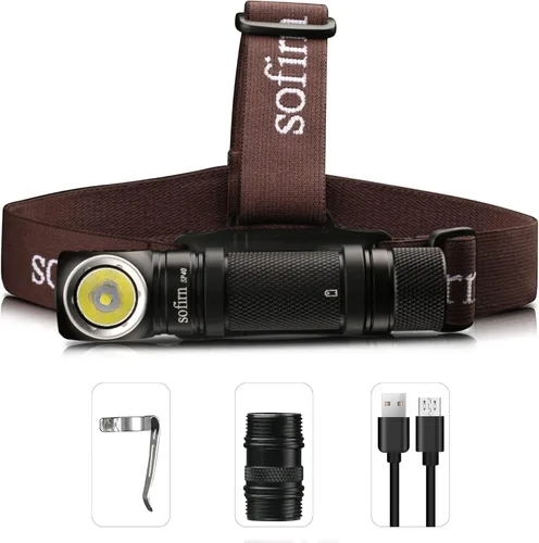 sofirn Faro recargable SP40 de 1200 lúmenes, potente linterna LED de 5500 K, faro delantero de ángulo recto para reparar correr, acampar, senderismo