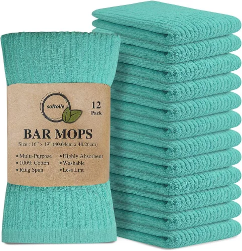 Softolle Paquete de 12 toallas de 12 a 16 x 19 pulgadas, 100 % algodón, súper absorbentes, multiusos para limpieza del hogar y bar (aguamarina)