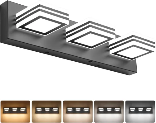1. Fácil de instalar: instala esta moderna luz LED de tocador sin esfuerzo en solo 15 minutos, LED de 24 vatios, cableado, no requiere montaje, placa trasera estándar de Estados Unidos. Esta lámpara de baño negra mate se conecta directamente al cable reservado y luego se monta en la pared. 2. Amplia aplicación, escenas: este accesorio de iluminación de baño de 3 luces negras sobre el espejo combina con varios espacios y es adecuado para tu baño, baño, pasillo, armario, sobre espejo, tocador, dormitorio, sala de estar, etc. 5 colores de luz ajustables, el botón en el lateral del cuerpo de la luz puede cambiar el color de la luz, la moderna luz LED de tocador va con tu estilo de vida. Ideal para renovaciones de estilo de luz LED moderna. 3. Alta calidad y duradera: barra de luz acrílica de aluminio de alta gama hecha de esta tecnología ligera y avanzada de galvanoplastia y sellado. Anticorrosión y a prueba de humedad, ideal para espacios húmedos como baño. Pantalla acrílica resistente y duradera. 4. Ahorro de energía: alta reproducción cromática 90, la tecnología de luz LED ahorra hasta un 80% de electricidad. Vida útil de hasta 50.000 horas. Luz de tocador eficiente, minimalista, moderna y contemporánea. Integralmente formado, líneas de borde claras y suavemente contorneadas. Blanco frío 6000K. 5. Servicio posventa: nuestras luces de tocador de baño son de 2 años. Póngase en contacto con nosotros en cualquier momento, y le responderemos en 24 horas. Inicia sesión en tu cuenta, comprueba el ID del pedido y haz clic en "Contactar con el vendedor" para contactarnos. La satisfacción del cliente es siempre nuestra búsqueda.