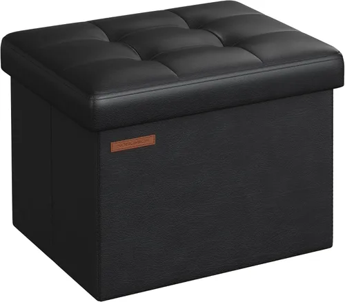 [Guarda tus artículos] Guarda tus libros, mantas y ropa de cama en esta otomana de 12.2"P x 16.1"A x 12.2"Al (31 x 41 x 31 cm) para ocultar el caos y tener un espacio ordenado Confort de asiento óptimo] Con un acolchado de espuma de 1" (2,5 cm) de espesor y cuero sintético de calidad, este banco de almacenamiento ofrece el confort óptimo para sentarse [Sólido y confiable] Con un robusto marco de fibra, este otomano de almacenamiento puede soportar hasta 286 libras (130 kg), lo que garantiza que puedas sentarte en él sin preocuparte Fácil de instalar y plegar: inserta el panel inferior y configura este otomano para su uso. Cuando no esté en uso, se puede plegar y colocar debajo de la cama o en el armario para ahorrar espacio Otomana plegable multiusos: esta otomana plegable versátil te permite descansar los pies mientras te relajas, ofrece asiento adicional cuando visitan invitados, o sirve como almacenamiento para la ropa y la ropa de cama en tu dormitorio. ¡Úsalo como te parezca!