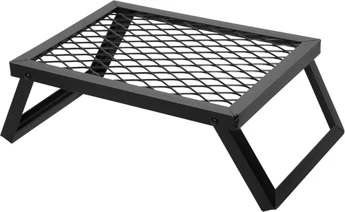 Construcción resistente que soporta fácilmente hasta 120 libras. De utensilios de cocina Construcción de acero resistente que proporciona uso sin preocupaciones y durabilidad Se pliega fácil y compactamente para almacenamiento y transporte Las patas se bloquean de forma segura en su lugar para formar una plataforma de cocción estable La superficie de cocción de malla de acero asegura una calefacción uniforme y una limpieza fácil