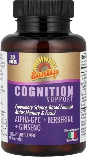 SunUp Cápsulas de apoyo cognitivo, 30 dosis, alfa-GPC, berberina, ginseng, glicina, suplemento para la salud cerebral