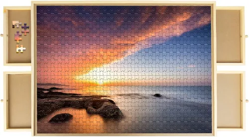 El mejor organizador de rompecabezas: la tabla de madera única proporciona el espacio de trabajo perfecto para clasificar, montar y almacenar de forma segura rompecabezas sin terminar hasta la próxima vez Superficie de 32 x 26 pulgadas que se adapta a la mayoría de rompecabezas estándar de 1500 piezas y otros juegos 4 cajones de almacenamiento extraíbles: bandejas integradas que te permiten ordenar piezas por color, organizar por formas y almacenar discretamente para futuras sesiones | Compuesto de material de madera dura/fibra reforzada duradera con asas recortadas para un fácil acceso Fácil de levantar, ligero y equilibrado para un almacenamiento rápido. Puedes colocar tu mesa de rompecabezas en cualquier superficie, encimeras, mesas de café, mantas de playa o incluso el suelo. Cuando necesites un espacio adicional para sentarse o cenar, simplemente cubre tu rompecabezas con la funda del rompecabezas, cierra los cajones y muévelo debajo de un sofá o cama para que tu rompecabezas se almacene bien y se mantenga de forma segura fácilmente en unos segundos. Regalo sorpresa para los amantes de los rompecabezas, una buena opción para Navidad, Hanukkah, cumpleaños, aniversario o regalo en cualquier momento Excelente opción para niños, niñas, adolescentes, jubilados, personas mayores y más.