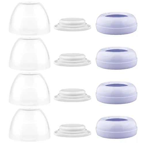 Reemplazo para ser compatible con piezas de botella natural Avent; tapa de cúpula, disco de sellado, anillo de collar x4; Por favor, no confunda las piezas de Avent Classic/Anti cólico con las piezas de Avent Natural Hecho de material libre de BPA, DEHP; Los informes de prueba están disponibles en línea para su referencia Utilice estas piezas y compre los pezones naturales de Avent para convertir sus viejas botellas Avent Classic, de plástico o de vidrio, para que funcionen como las nuevas botellas Avent Natural Cumple con la regulación de la FDA de Estados Unidos y la UE para contacto con alimentos. Probado por laboratorios independientes.