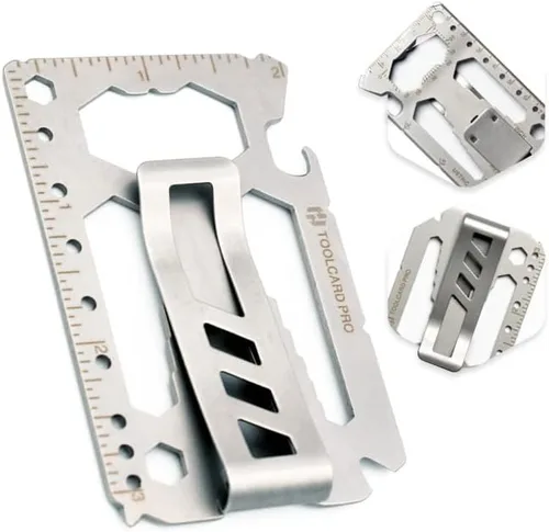 Hayvenhurst - Tarjeta multiherramienta para tarjetas de crédito, tamaño de cartera, delgada, minimalista, acero inoxidable, tarjeta de supervivencia